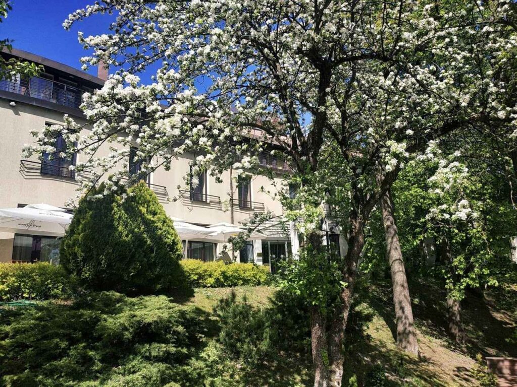 „Perkuno Namai” is the first family hold hotel in Kaunas. It is situated in a tranquil and prestigious neighborhood. The hotel borders the oldest oak park in Europe and is only 300 m. from Kaunas Stadium and 3 km from the city center. „Perkuno Namai” offer 29 rooms – 2 Suites, 6 Junior Suites, 10 doubles and 11 singles.